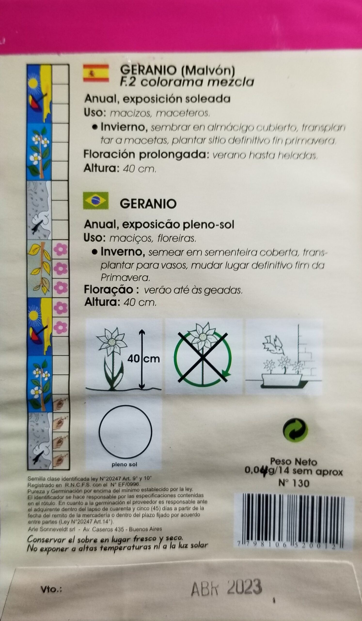 Los sobres son cuidadosamente envasados herméticamente con semillas importadas de Holanda de excelente poder germinativo que se mantiene inalterable por tener un sobre metalizado que garantiza su calidad.