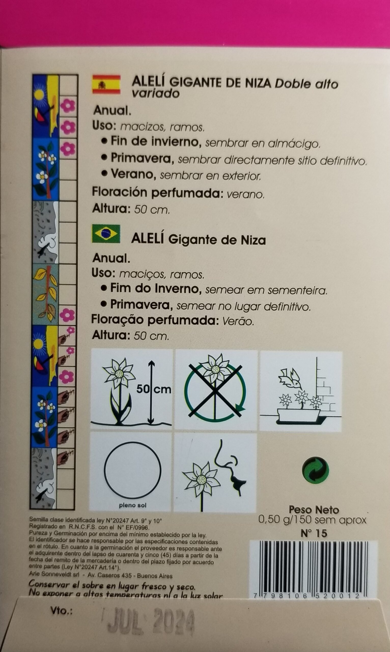 Los sobres son cuidadosamente envasados herméticamente con semillas importadas de Holanda de excelente poder germinativo que se mantiene inalterable por tener un sobre metalizado que garantiza su calidad.
