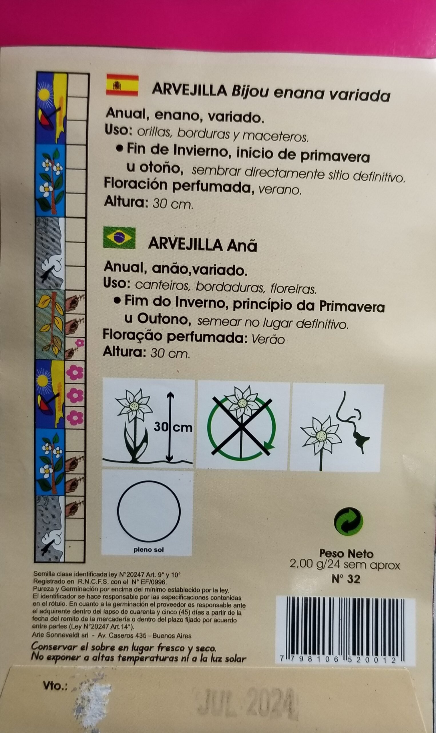 Los sobres son cuidadosamente envasados herméticamente con semillas importadas de Holanda de excelente poder germinativo que se mantiene inalterable por tener un sobre metalizado que garantiza su calidad.