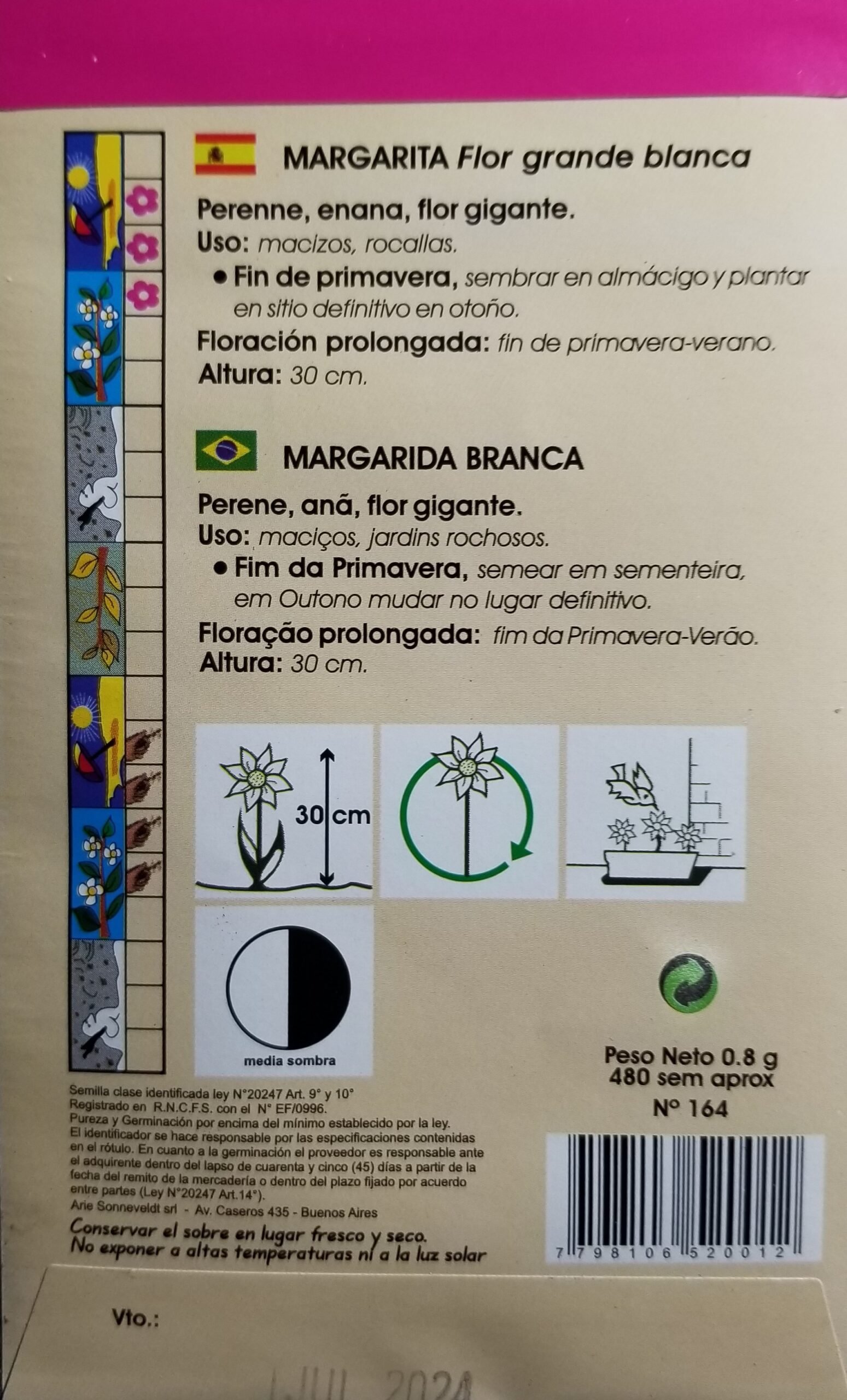 480 Semillas Margarita Flor Grande Blanca Calidad Premium